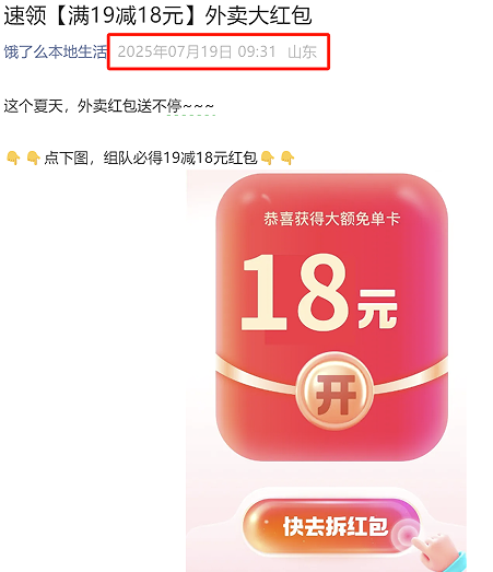 当天,饿了么我方的官方账号也在发满19减18的优惠券,和零元购比较只进步了1块钱。