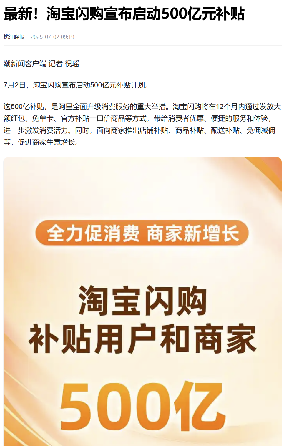 7月2日,淘宝闪购推出了500亿的补贴诡计。