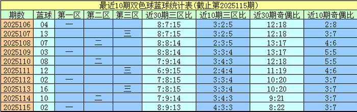 在最近30期开奖中,蓝球在该区出现了13次其中奇数蓝球号码开出3次,偶数蓝球号码开出10次,偶数蓝球走势相对活跃,近期不错连续和顺该区偶数蓝球号码出现。